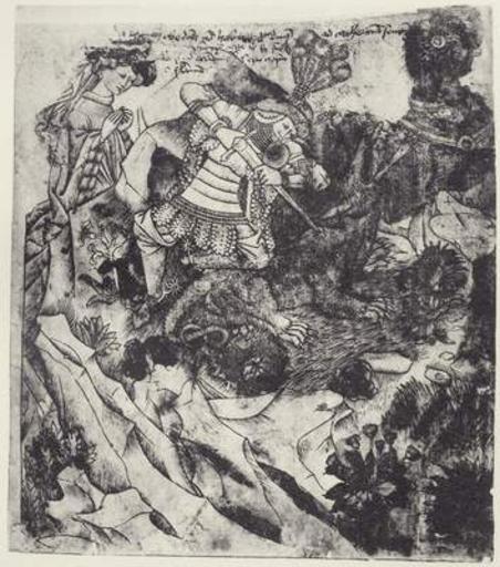Keywords: Hl. Georg (Meister der Spielkarten).png copper engraving 123 × 140 mm Institution Albertina Graphische Sammlung accession number object history credit line 25 000 Meisterwerke ISBN 3-86150-622-X PD-old-100 Meister der Spielkarten Medieval engravings German prints in the Albertina Master Of The Playing Cards Saint George and the Dragon Drawings of Saint George Individual playing cards Meister der Spielkarten |