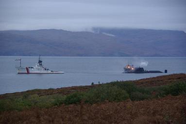| Keywords: HMS Astute Anglian Prince Skye.JPG en Emergency Tow Vessel ETV Anglian Prince preparing to pull grounded submarine HMS Astute into deeper waters de Der Schlepper der Britischen Küstenwache Anglian Prince nimmt das vor der Isle of Skye auf Grund gelaufene Atom-U-Boot HMS Astute in Schlepp um es in tieferes Wasser zu ziehen Own PenumbraLpz 2010-10-22 fotografiert am 22 10 2010 17 23 Uhr GMT von der Küste der Isle of Skye aus Blende f/5 6; Belichtungszeit 1/50; Brennweite 100mm; Empfindlichkeit ISO-400 HMS Astute S119 Her Majesty's Coastguard ships |