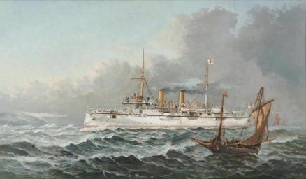 | Keywords: HMS Bonaventure by Henry J Morgan.jpg HMS 'Bonaventure' by Henry J Morgan Oil on canvas 35 x 59 2 cm Collection Portsmouth Museums and Records Service <br>This version downloaded from http //static bbci co uk/arts/yourpaintings/images/paintings/pormg/large/hmp_pormg_1946_234_large jpg 1894 “1895 Henry J Morgan PD-Art DEFAULTSORT Bonaventure HMS Bonavenure ship 1894 Bonaventure Henry J Morgan Images from BBC Your Paintings Cruisers in art | ||||