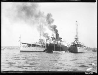 | Keywords: hms dragon hmsdragon british beacon britishbeacon hms dunedin hmsdunedin garden island gardenisland sydney harbour sydneyharbour sydney wilkinson ship wharf wharves blackandwhite monochrome photo border outdoor boat vehicle sea black and white HMS DRAGON, the British tanker BRITISH BEACON and HMS DUNEDIN are depicted anchored off Garden Island, Sydney on 9 April 1924. This photograph was taken by Frederick Wilkinson while he was travelling on board a ferry to Watson’s Bay, Sydney. HMS DRAGON was a Danae class cruiser of the Royal Navy launched in Glasgow in December 1917. In January 1943 the vessel was transferred to the Polish Navy for further convoy duties and then took part in Operation Neptune as part of the Normandy landings. It was torpedoed and eventually scuttled in 1944. HMS DUNEDIN was a Danae class light cruiser of the Royal Navy commissioned at Newcastle-on-Tyne on 13 September 1919. During WW2 it was used for searching out German battle cruisers and merchant ships as part of the Northern Patrol, then the West Indies Station and finally the South Atlantic Station. On 24 November 1941 DUNEDIN was sunk after it was hit by torpedoes from the German U-boat (U-124) off the coast of Brazil. In total 419 men lost their lives; there were only 67 survivors. Frederick Wilkinson (1901 - 1975) migrated to Australia from England in 1911. While wokring various jobs in and around central Sydney, Wilkinson acquired a camera and began taking photographs of vessels and harbour scenes. Many of his images were used by commercial photographers for souvenir postcards. The ANMM undertakes research and accepts public comments that enhance the information we hold about images in our collection. This record has been updated accordingly. Photographer: Frederick Garner Wilkinson Object no. 00037701 HMS DRAGON, the British tanker BRITISH BEACON and HMS DUNEDIN are depicted anchored off Garden Island, Sydney on 9 April 1924. This photograph was taken by Frederick Wilkinson while he was travelling on board a ferry to Watson’s Bay, Sydney. HMS DRAGON was a Danae class cruiser of the Royal Navy launched in Glasgow in December 1917. In January 1943 the vessel was transferred to the Polish Navy for further convoy duties and then took part in Operation Neptune as part of the Normandy landings. It was torpedoed and eventually scuttled in 1944. HMS DUNEDIN was a Danae class light cruiser of the Royal Navy commissioned at Newcastle-on-Tyne on 13 September 1919. During WW2 it was used for searching out German battle cruisers and merchant ships as part of the Northern Patrol, then the West Indies Station and finally the South Atlantic Station. On 24 November 1941 DUNEDIN was sunk after it was hit by torpedoes from the German U-boat (U-124) off the coast of Brazil. In total 419 men lost their lives; there were only 67 survivors. Frederick Wilkinson (1901 - 1975) migrated to Australia from England in 1911. While wokring various jobs in and around central Sydney, Wilkinson acquired a camera and began taking photographs of vessels and harbour scenes. Many of his images were used by commercial photographers for souvenir postcards. The ANMM undertakes research and accepts public comments that enhance the information we hold about images in our collection. This record has been updated accordingly. Photographer: Frederick Garner Wilkinson Object no. 00037701 |