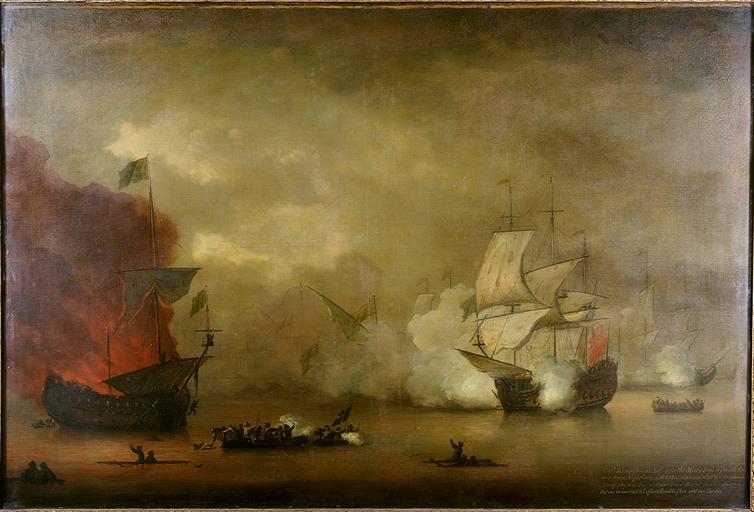Keywords: HMS Mary Rose, Monamy.jpg Artwork Creator Peter Monamy Described as Action between the Mary Rose and seven Algerines 8 December 1669 This identification cannot be correct The painting bears the date 1734 which went unnoticed until the 1930s Oil on canvas cm 85 125 5 Institution National Maritime Museum Not on view Signed by Monamy and dated 1734 The painting appears to be based on a mezzotint by Elisha Kirkall produced circa 1725-1730 See M S Robinson The Paintings of the Willem van de Veldes published 1990 Vol 1 pages 235-236 He notes that a long inscription refers erroneously to the Mary Rose action in 1669 It was probably painted on in the late eighteenth century accession number BHC0297 http //collections rmg co uk/collections/objects/11789 html National Maritime Museum PD-old-100 Original upload log en wikipedia ftcg page en wikipedia Monamy-Kempthorne jpg wikitable - 16 06 7 June 2013 1 280 × 869 984 332 bytes Roscelese w en <nowiki> Painting by Peter Monamy of HMS Kingfisher 1675 under Morgan Kempthorne battling Algerine men-of-war A caption indicates that the painting depicts the Battle of Cádiz 1669 but this is likely erroneous </nowiki> Peter Monamy Elisha Kirkall