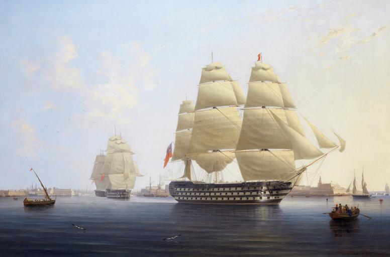 | Keywords: HMS Queen, by Robert Strickland Thomas.jpg en HMS Queen Flagship of Vice Admiral Sir Edward Rich Owen Commander-in-Chief of the Mediterranean fleet leaving Malta oil on canvas 70 x 105 cm signed b r R S Thomas R N px 1842 1842 http //www bonhams com/auctions/20485/lot/32/ Bonhams Creator Robert Strickland Thomas PD-Old PD-US Uploaded with UploadWizard HMS Queen ship 1839 Robert Strickland Thomas 1842 Historical images of Malta Malta in history paintings Images from Bonhams | ||||