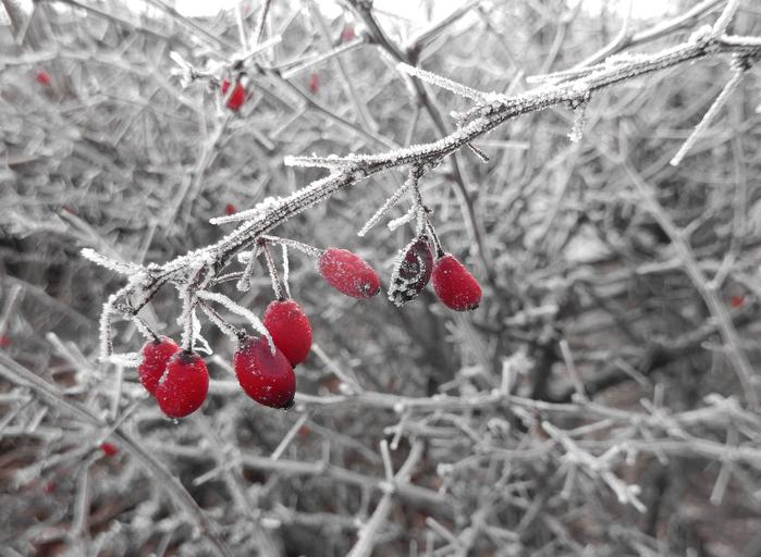 Keywords: hoarfrost winter magic cold wintry nature berry red rose hip icy frozen snow crystals frosty iced eiskristalle frost