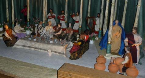 Keywords: Hochzeit zu Kanaan Oggersheim.JPG en Ludwigshafen-Oggersheim Germany own Immanuel Giel 2009-03 Wallfahrtskirche Oggersheim Sculptures of the marriage at Cana Nativity scenes of Germany