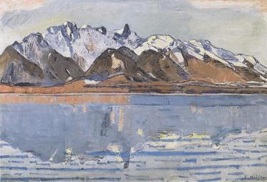 | Keywords: Hodler - Thunersee mit Stockhornkette -ca1913.jpg Artwork Creator Ferdinand Hodler ~ 1913 oil canvas 59 5 x 89 cm private collection accession number object history credit line repro from artbook PD-old Landscape paintings by Ferdinand Hodler Paintings of Lake Thun Stockhorn 1910s landscape paintings |