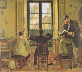 | Keywords: Hodler - Uhrmacherwerkstätte in Madrid - 1879.jpeg Artwork Creator Ferdinand Hodler Uhrmacherwerkstätte in Madrid 1879 oil canvas cm 81 94 institution Kunstmuseum Luzern scan from a book PD-old-auto 1918 Other versions PD-old-auto 1918 Paintings by Ferdinand Hodler Kunstmuseum Luzern Reading in art Windows in art |