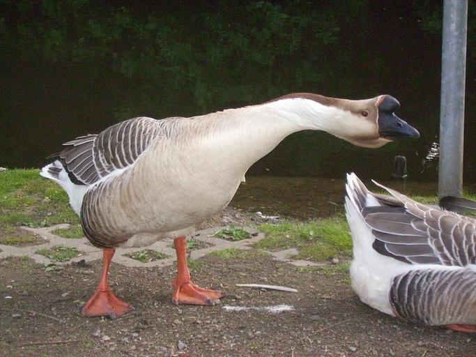 MAKE A MEME View Large Image Hoeckergans.jpg Chinese goose Höckergans Anser cygnoides f domestica oie de Guinée sv En knölgås es Un ganso chino own Garitzko 2008-05 Chinese geese
