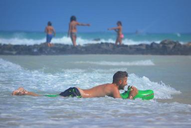Keywords: holiday people beach sea blue sky waves