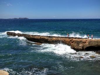 Keywords: holiday rocks sea nature water beach coast rock ocean landscape view waves rocky coast blue mediterranean tourism ibiza summer billow girls