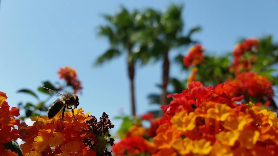 Keywords: holiday spain bee nature flowers palm trees insect summer sprinkle honey bee garden plant worker bee blossom bloom animals