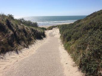 Keywords: holiday zealand landscape blue water sun nature dunes day out sea beach marram grass path hiking