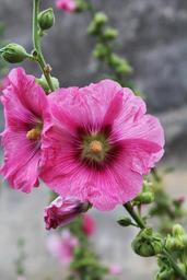 Keywords: hollyhock passerose pink rod flower brightly colored summer nature field macro