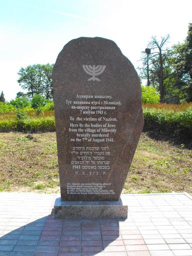 | Keywords: Holocaust in Milovidy (Baranovichy District) 2a.jpg ru Памятник на месте пе езахо онения 25 ев еев убитых в иловидах во в емя Холокоста аходится на местном кладбище в де евне иловиды Ба ановичского айона Установлен вместо ста ого памятника в 2016 году 2016-07-11 own Avner other versions 52 902122 25 849754 cc-zero Holocaust in Milavidy Baranovichy District | ||||