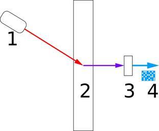Keywords: Hologram lezen.svg Illustratie bij holografische opslag- uitlezen Fasen in het uitlezen 1 laserbeam 2 opslagmedium 3 CCD 4 Data-page own Van Haerenborgh Dirk Holography