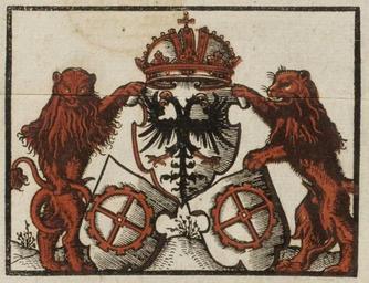 | Keywords: Holtzkunst 1563 03a.jpg Detail vom Titelblatt Wappen von Mühlhausen im Elsass H B Verzeichnuß der figuren vnnd neuwen öfen / von der ersparung der neuwen erfundenen Holtzkunst Mülhausen im oberen Elsäß Schmid 1563<br />HAB Wolfenbüttel http //diglib hab de/drucke/o-92-2f-helmst/start htm 1563 žH B Author died more than 70 years ago - public domain PD-old-100 Holtzkunst 1563 Symbols of Mulhouse | ||||