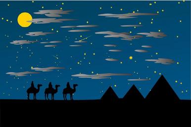 Keywords: holy three kings way from the orient pyramids camels star desert graphic sky moonlight at night romantic night sky comets