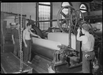 | Keywords: Holyoke, Massachusetts - Paper. American Writing Paper Co. Rewinding paper from reel. - NARA - 518328.tif Scope and content General notes 518328 Local identifier 69-RP-39 Federal Works Agency Work Projects Administration National Research Project ca 1941 - ca 1942 NARA-Author Hine Lewis Wickes 1874-1940 Photographer 1122914 <br /> Still Picture Records Section Special Media Archives Services Division NWCS-S National Archives at College Park 8601 Adelphi Road College Park MD 20740-6001 1936 - 1937 Record group Record Group 69 Records of the Work Projects Administration 1922 - 1944 Record group ARC 398 Lewis Hine Photographs for the National Research Project compiled 1936 - 1937 Series ARC 518291 File unit File unit ARC Variant control numbers NAIL Control Number NWDNS-69-RP-39 yes Other versions <gallery> File Mt _Holyoke _Massachusetts_-_Paper _American_Writing_Paper_Co _Rewinding_paper_from_reel _-_NARA_-_518328 tif tif File Mt _Holyoke _Massachusetts_-_Paper _American_Writing_Paper_Co _Rewinding_paper_from_reel _-_NARA_-_518328 jpg jpg </gallery> NARA-cooperation PD-USGov Men at work in the United States NARA TIF images with categorized JPGs |