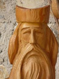 Keywords: holzfigur fig statue priest pastor monk preacher man person human face form happy fromm holy