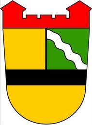 | Keywords: Homberg(Duisburg) Wappen.png de Blasonierung Auf goldenem Grund geteilt durch einen schwarzen Querbalken in der oberen Hälfte links befindet sich das Wappen des Rheinlandes in grünem Feld einen linksschrägen silbernen Wellenbalken Das Oberwappen zeigt eine rote Mauerkrone mit zwei Türmen Die Bekrönung des Wappens stellt die Mauertürme des alten Homberger Hebeturmes am Rhein dar own Juergenk59 2009-12-05 DEU Homberg Ndrh COA svg Coats of arms from Duisburg | ||||