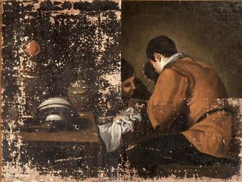 | Keywords: Hombres comiendo (Real Academia de Bellas Artes de San Fernando).jpg attributed to La obra representa a dos hombres comiendo y es una copia de una obra de Diego Velázquez atribuida al pintor Gabriel Durán oil on canvas Size cm 103 79 Institution Real Academia de Bellas Artes de San Fernando http //ceres mcu es/pages/Main accession number 0836 http //ceres mcu es/pages/Main PD-old-100 Paintings after Diego Velázquez Gabriel Durán Paintings in the Royal Academy of Fine Arts of San Fernando |