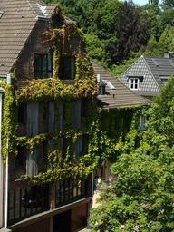 Keywords: home architecture green building facade old live evening sun bergisches land elberfeld wuppertal overgrown wine germany north rhine westphalia