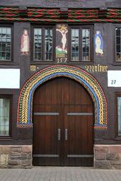 Keywords: home building door truss decor colorful stripes window facade figurine