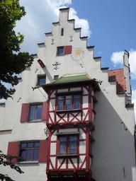 Keywords: home building fachwerkhaus ulm old town housewife decorated truss window facade architecture ulm's old town historically fishermen's quarter front gable restored well maintained sundial