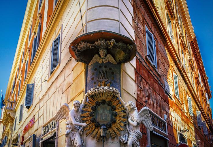 Keywords: home corner facade architecture building corner house historically italy rome capital ornament angel old town places of interest town center tourism