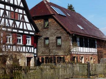Keywords: home fachwerkhaus farmhouse hof farm building agriculture rustic land washer lock scrubber castle sky blue nice weather spring sunny noble restored well maintained scrubber hof truss
