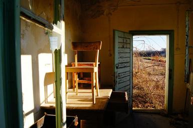 Keywords: home old door window chair leave building decay dilapidated smashed crash run down