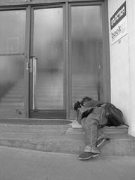 Keywords: homeless fedélnélküli man sleep street gate entrance