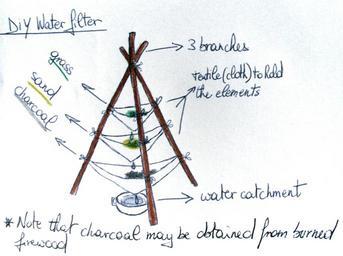 | Keywords: Homemade waterfilter.jpg en A hand-drawn picture of a diy-waterfilter which can be made in the field with commonly available materials branches cloth sand charcoal and grass It can be used to filter slightly contaminated/polluted water so that it is safe for drinking Charcoal can be produced from wood by the indirect preferred method and the direct method The direct method is easiest and requires only wood an open fire and some plant material to allow the wood to burn up incompletely see http //www velvitoil com/Charmake htm this website for links The indirect method which produces far less smoke and is healthier for environment and the person making the coal is found http //www wikihow com/Make-Charcoal here and http //www instructables com/id/How-to-Make-some-Charcoal/ here The picture has been drawn after a model from Peter Darman's The Survival Handbook own KVDP 2008-06-16 <gallery> File Filtre_ C3 A0_eau_de_plein_air svg </gallery> Irrigation Drinking water Water treatment Filters Sports equipment Hiking equipment |