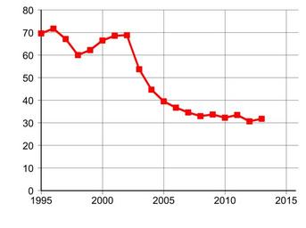 | Keywords: Homicide Rate in Colombia.svg en Homicide rate per 100 000 in Colombia Data taken from http //www indexmundi com/facts/colombia/homicide-rate 2016-08-17 own Delphi234 other versions current annually Generated with Wikimedia SVG Chart SVG Chart/box cc-zero Homicide rates Crime in Colombia Diagrams labelled with numbers only |