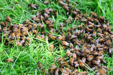 Keywords: honey bees bees grass lawn close-up many hive insects