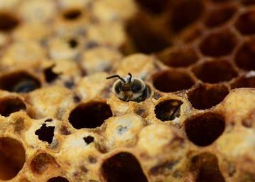 Keywords: honey bees drone hatching male bee beehive honey bees birth new born buckfast insect eyes antenna hive brood close-up macro detail