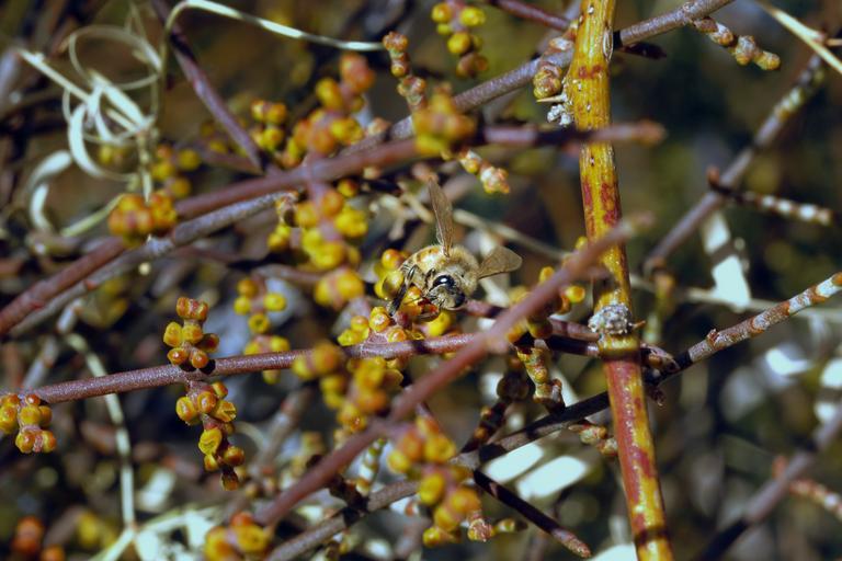 Honeybee_(Apis)_on_desert_mistletoe_(Phoradendron_californicum).jpg (5184x3456)