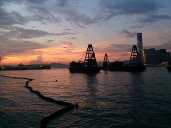 Keywords: hong kong victoria harbour sunset barges wall paper background dark sea ship container wallpaper