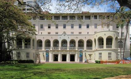 Keywords: honolulu hawaii building architecture grass nature outside trees sky clouds lawn grounds tropics tropical city cities urban