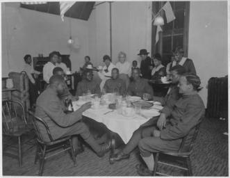 | Keywords: Honoring men about to leave for camps. (African American) women caring for their own. Newark, New . . . - NARA - 533585.tif Scope and content The full caption for this item is as follows Honoring men about to leave for camps African American women caring for their own Newark New Jersey General notes 533585 Local identifier 165-WW-127 93 War Department 1789 - 09/18/1947 Still Picture Records Section Special Media Archives Services Division NWCS-S National Archives at College Park 8601 Adelphi Road College Park MD 20740-6001 1917 - ca 1919 Record group Record Group 165 Records of the War Department General and Special Staffs 1860 - 1952 Record group ARC 494 American Unofficial Collection of World War I Photographs compiled 1917 - 1918 Series ARC 533461 File unit File unit ARC Variant control numbers NAIL Control Number NWDNS-165-WW-127 93 yes Other versions NARA-cooperation PD-USGov New Jersey in the 1910s African American soldiers Doughboys United States Army soldiers Black and white photographs of men eating History of Newark New Jersey |