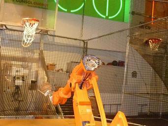 | Keywords: Hoops the Basketball Robot.JPG en Hoops a robotic basketball-shooting arm with 98 accuracy on display at the Roboworld in Carnegie Science Center Pittsburgh PA Before reprogramming it was an industrial robotic arm used for welding 2013-09-29 14 19 45 own Photojunkie Uploaded with UploadWizard Carnegie Science Center Robots |