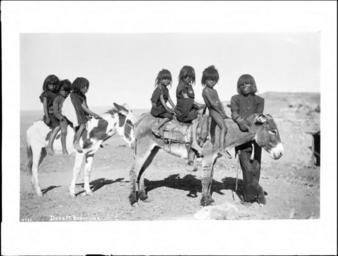 | Keywords: Hopi children riding burros, Arizona, ca.1900 (CHS-4735).jpg en <br> Hopi children riding burros Arizona ca 1900 Photograph of Hopi children riding burros Arizona ca 1900 Six children ride on two burros three on each burro A man stands next to the burro on the right The burro on the left is a white burro with dark spots while the burro on the right is of a single color The lead boy is naked The others are all clothed in dresses shirts or blankets The man wears a dark long-sleeved shirt and dark pants Part of a structure is visible at right Call number CHS-4735 Photographer James George Wharton Filename CHS-4735 Coverage date circa 1900 Part of collection California Historical Society Collection 1860-1960 Format glass plate negatives Type images Part of subcollection Title Insurance and Trust and C C Pierce Photography Collection 1860-1960 Repository name USC Libraries Special Collections Accession number 4735 Microfiche number 1-76-23 Archival file chs_Volume98/CHS-4735 tiff Repository address Doheny Memorial Library Los Angeles CA 90089-0189 Geographic subject country USA Format aacr2 2 photographs glass photonegative photoprint b w ; 17 x 22 cm Rights Digitally reproduced by the USC Digital Library; From the California Historical Society Collection at the University of Southern California Subject adlf tribal areas Project USC Repository email specol usc edu Identifying number unidentified no James-1322 Contributing entity California Historical Society Date created circa 1900 Publisher of the digital version University of Southern California Libraries Format aat photographic prints; photographs Geographic subject state Arizona Legacy record ID chs-m17046; USC-1-1-1-13518 Access conditions Send requests to address or e-mail given Phone 213 821-2366; fax 213 740-2343 Subject file heading Indians -- Hopi Subject lcsh Indians of North America; Hopi Indians; Children Subject Hopi Indians circa 1900 date created James George Wharton http //digitallibrary usc edu/cdm/ref/collection/p15799coll65/id/17061 PD-old-70-1923 Images from USC Digital Library uploaded by Fæ California Historical Society Collection 1860-1960 Glass plate negatives Hopi children Photographs by George Wharton James |