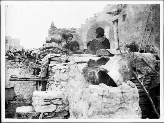 | Keywords: Hopi ("Moki") Indian family in front of their house at Oraibi, Arizona, ca.1900 (CHS-4590).jpg en <br> Hopi Moki Indian family in front of their house at Oraibi Arizona ca 1900 Photograph of a Hopi Moki Indian family in front of their house at Oraibi Arizona ca 1900 The woman and three children stand behind a low adobe wall in front of their house One of the children is a maiden with her hair fixed in the traditional double bun fashion Several pelts and blankets are draped over the wall The house has exposed rafter tails Call number CHS-4590 Legacy record ID chs-m16920; USC-1-1-1-13519 Photographer James George Wharton Filename CHS-4590 Coverage date circa 1900 Part of collection California Historical Society Collection 1860-1960 Type images Geographic subject city or populated place Oraibi Repository name USC Libraries Special Collections Accession number 4590 Microfiche number 1-168- Archival file chs_Volume96/CHS-4590 tiff Part of subcollection Title Insurance and Trust and C C Pierce Photography Collection 1860-1960 Repository address Doheny Memorial Library Los Angeles CA 90089-0189 Geographic subject country USA Format aacr2 2 photographs glass photonegative photoprint b w ; 17 x 22 cm Rights Digitally reproduced by the USC Digital Library; From the California Historical Society Collection at the University of Southern California Subject adlf tribal areas Project USC Repository email specol usc edu Identifying number unidentified no James-46 Contributing entity California Historical Society Date created circa 1900 Publisher of the digital version University of Southern California Libraries Format aat photographic prints; photographs Geographic subject state Arizona Subject file heading Indians -- Hopi Geographic coordinates -110 639717 35 876389; -110 639442 35 876389; -110 639442 35 874722; -110 639717 35 874722; -110 639717 35 876389 Format glass plate negatives Access conditions Send requests to address or e-mail given Phone 213 821-2366; fax 213 740-2343 Geographic subject county Navajo Subject lcsh Indians of North America; Hopi Indians; Dwellings 1900 James George Wharton http //digitallibrary usc edu/cdm/ref/collection/p15799coll65/id/16841 PD-old-70-1923 Images from USC Digital Library uploaded by Fæ California Historical Society Collection 1860-1960 Glass plate negatives Hopi people Photographs by George Wharton James |