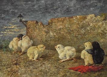 | Keywords: Horacio Lengo On comprende l honneur comme ca.jpg On comprende l'honneur comme ca vermenschlichte Küken Links unten signiert Ortsbezeichnung Paris und 18 75 datiert Mitte rechts betitelt Öl auf Holz 38 x 52 cm http //www neumeister com/ 1875 Creator Horacio Lengo PD-old-100 Images from Neumeister Kunstauktionen Horacio Lengo Chicks in art 1875 paintings |