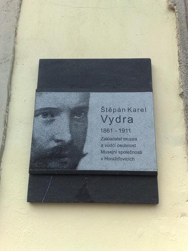 Keywords: Horažďovice - Štěpán Karel Vydra.jpg Horažďovické muzeum je vybaveno touto památeční plaketu na svého zakladatele own 2012 Takmocsekretovanej Horažďovice Castle Cc-zero