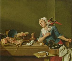 | Keywords: Horemans, Peter Jakob - Küchenstillleben mit weiblicher Figur und Papagei - 1760.jpg Artwork Creator Peter Jakob Horemans Küchenstillleben mit weiblicher Figur und Papagei<br> Das Gefühl 1760 oil canvas 36 5 × 44 5 cm Staatsgalerie im Neuen Schloss Bayreuth Zweiggalerie der Bayerischen Staatsgemäldesammlungen EG object history Kurfürstliche Galerie München exhibition history credit line Petrus Horemans / 1760 signature / date lower left enlarged accession number 2990 Own from book Bayerische Staatsgemäldesammlungen Malerei des Spätbarock Ostfildern Hatje Cantz 2007 ISBN 978-3-7757-1936-0 vergriffen S 223 Other versions <gallery>Horemans Peter Jakob - Küchenstillleben mit weiblicher Figur und Papagei - 1760 Detail Person jpg</gallery> PD-old-100 Peter Jakob Horemans 1760 Kuchenstillleben mit weiblicher Figur und Papagei Flemish paintings in the Staatsgalerie im Neuen Schloss Bayreuth 1760 genre paintings 1760 oil on canvas paintings 1760 paintings in Germany 18th-century oil on canvas paintings in Germany 18th-century oil paintings of sitting women Paintings of women with parrots Meats in art Paintings of kitchens Paintings with signatures Paintings with years of production artist People in kitchens in art People with Psittaciformes Tableware in art 18th-century women looking at viewer in art Scanned with HP PhotoSmart C5280 Location not applicable Scans by Mattes Work by Mattes 2012 |