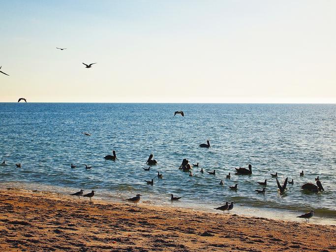 Keywords: horizon birds ocean landscape blue nature summer sky silhouette water scene sea view sun flock beautiful light outdoor flying beauty natural sunlight outdoors beach scenic day seagulls pelican scenery coastline sand shoreline