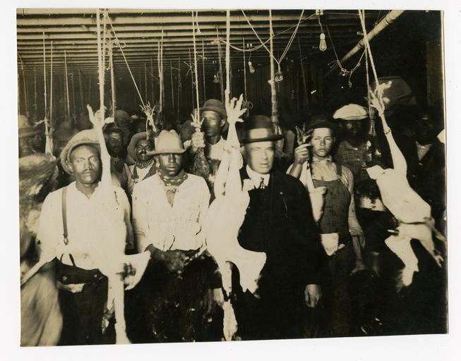 Keywords: Picking turkeys in a packing plant. texas turkeytrot cuero turkeyspacking