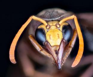 Keywords: hornet insect macro compound eyes probe antennas mandibles upper jaw mouth tool