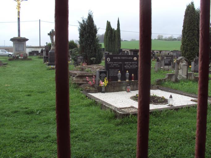 Keywords: Horní Police areál 5.JPG cs Hřbitov pohled z ambitu poutního areálu vrata byla zamčená own Zákupák 2013-05-01 Cemetery Horní Police