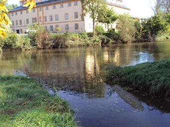 Keywords: Horní Police soutok.jpg cs Vandecký potok se vlévá do Ploučnice u zámku Horní Police own Zákupák 2010-10-08 Ploučnice Confluences of the Ploučnice Vandecký potok Castle Horní Police
